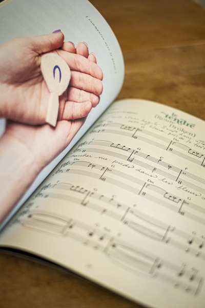 Cahier de partitions de l’album Le Piano et le torrent de Viviane Audet incluant des annotations et de nombreuses images.