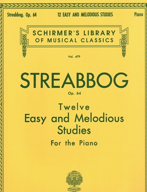 Douze études mélodiques et faciles de Louis Streabbog, Op. 64. Streabbog est le nom de plume de l’auteur qui correspond à son vrai nom lu à l’envers : Gobbaerts.